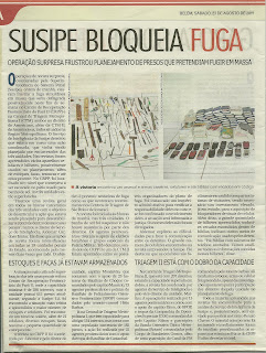 19 - matéria de jornal mostra embargo de penitenciária pela justiça paulista a pedido do MP.